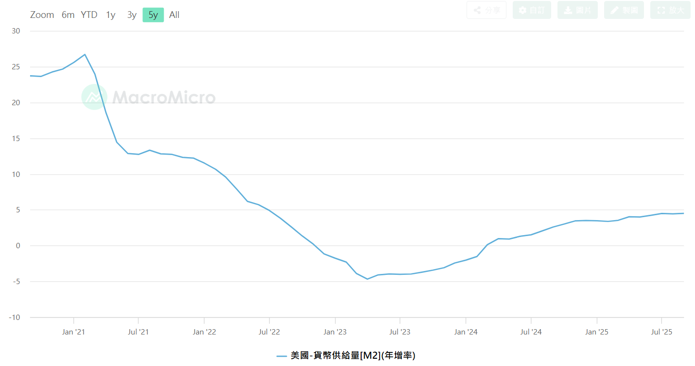 美國M2年增率,資料來源 : MacroMicro財經M平方
