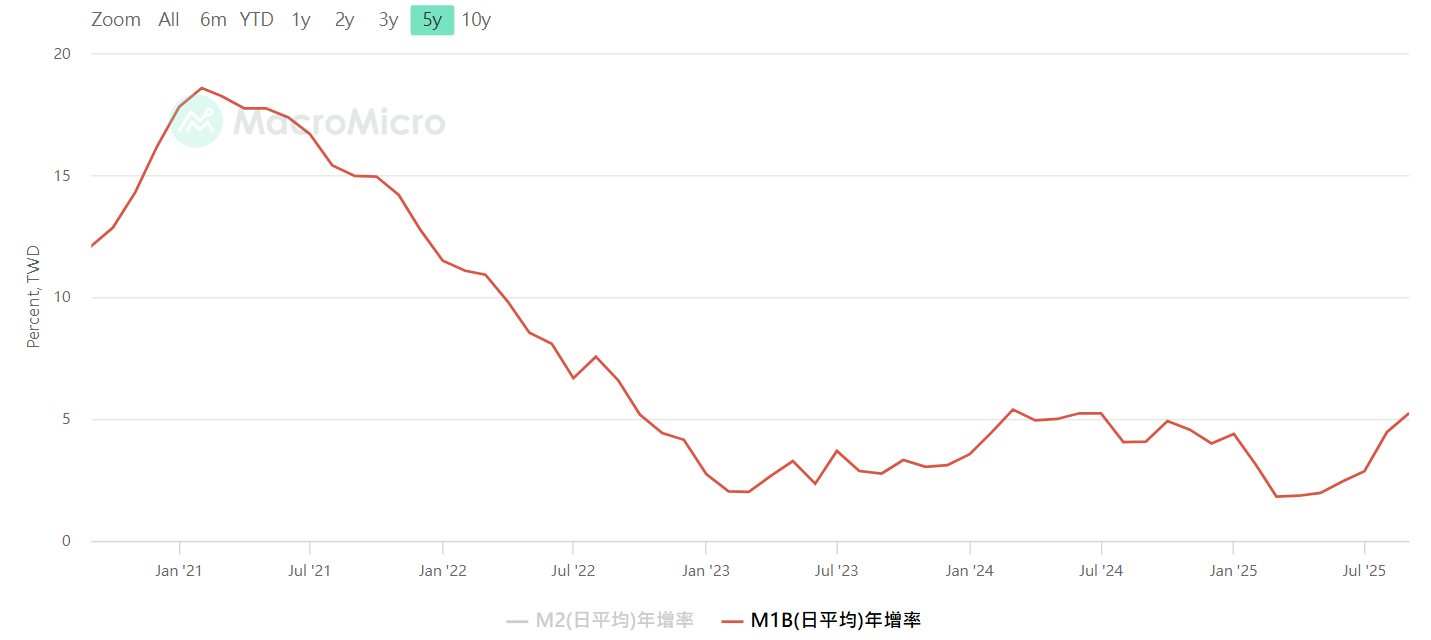 M1B年增率,若負值為警訊,資料來源:MacroMicro 財經M平方