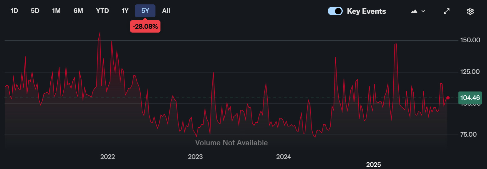 VVIX :如果 VIX 是「市場的恐懼」,那麼 VVIX 就是解讀為「市場對恐懼會增強的恐懼」,VVIX若在110-120,代表避險需求正在強化;若逼迫近150以上,市場已陷入「恐懼的波動」,資料來源 : yahoo finance