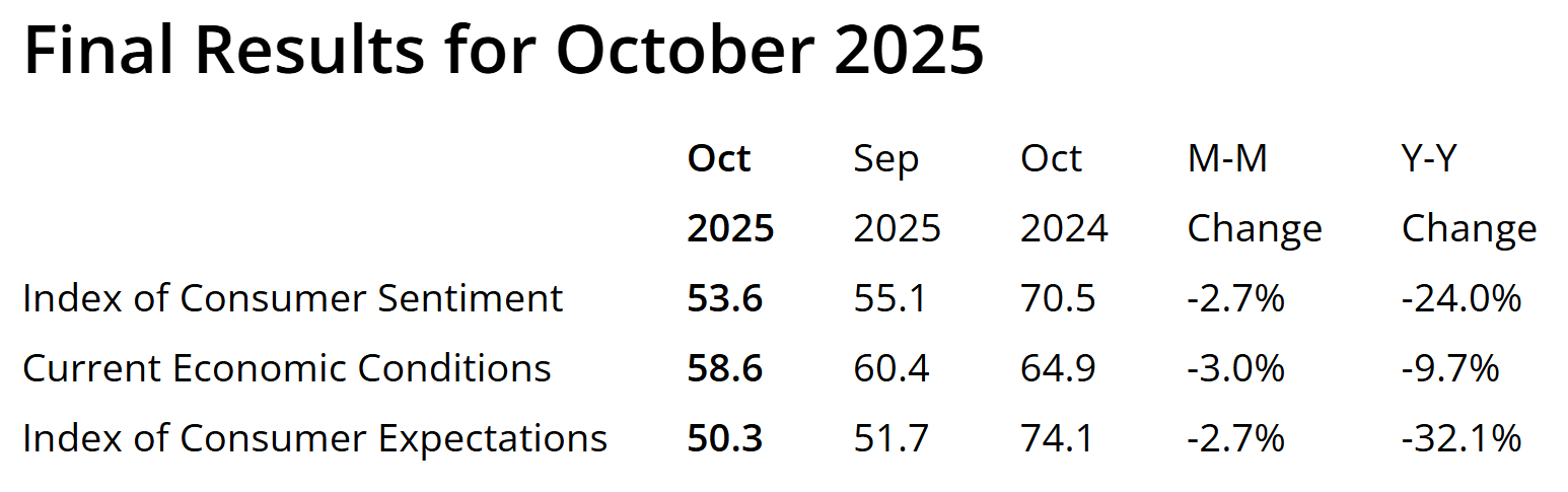 密西根大學消費者信心指數,資料來源:密西根大學